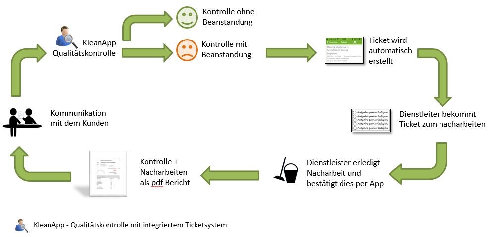 Als Endkunde können Sie über ein Ticketsystem jede Art von Reklamation schnell und einfach an den Dienstleister weiterleiten. Sie bekommen dann übers System mitgeteilt, wenn das Ticket bearbeitet bzw. erledigt wurde und haben Sie einen Überblick. Das Ticketsystem kann auch genutzt werden um beim Dienstleister Sonderreinigungen anzufragen.